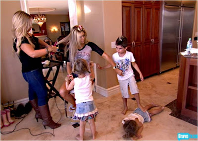 Now we have another ludicrous mini scene of Alexis. This time some girl is straightening her hair for her while her kids run around. Is Alexis disabled? I mean besides mentally?